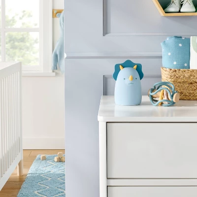 Light up your kid’s bedroom in adorable style with this Nightlight from Cloud Island™. This nightlight pack includes batteries, gift box and nightlight. The blue dino nightlight is designed with eyes, nose, horn and crest for a fun look. It features an adjustable design with a sleep timer and a base slide on/off switch for easy operation. Best of all, this LED nightlight has two-way light setting to help customize the level of light to their liking.